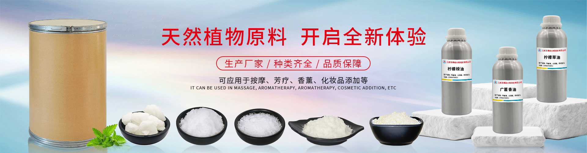 主營: 天然植物基礎油  |  天然植物精油  |  熱感劑系列  |  涼感劑系列  |  其他系列  |